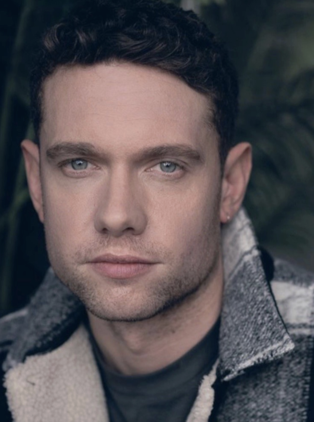 Actor Tom Brittney. A handsome young man with blue eyes, wearing a plaid jacket.
